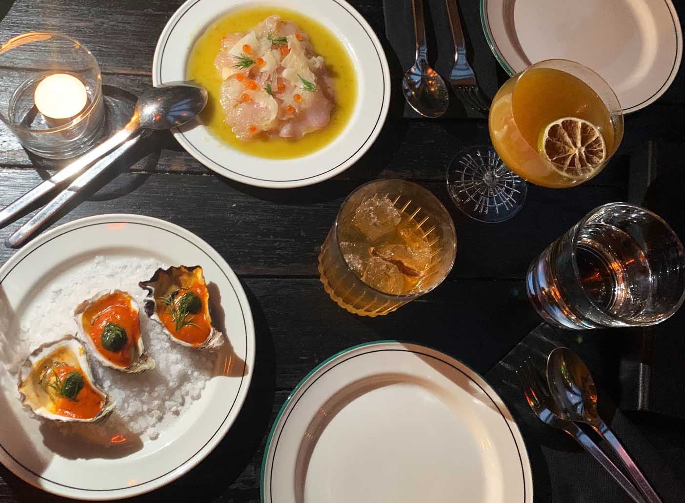 Intimate table settings line the window-strewn walls, so you can enjoy the atmosphere as you gaze over the city below. Dimly-lit with flickering (in a vibey way, not a broken way) overhead lanterns and tabletop tea candles, which drench the venue in a cosy glow. The ambiance is flawless, ideal for a first date or dinner and drinks with your besties!