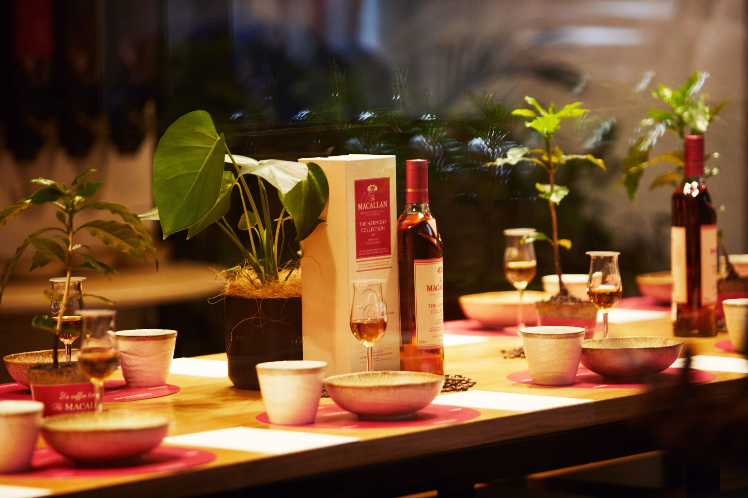 Among a tamed jungle of lush indoor greenery, we were led to an the illuminated tasting table, accented with twinkling bottles of The Macallan Harmony Collection Inspired by Intense Arabica, aromatic coffee beans, and young coffee tree plants on display, signifying the journey of the polished product from plant to the glass.