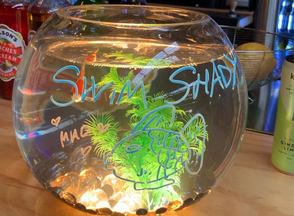 If you are not a dog person, do not fret! Roxy is not the only ‘angry’ animal at this venue. If you head up to the bar, you’ll not only be greeted by a wide selection of drinks, but also by Swim Shady (AKA The Angry Fish).