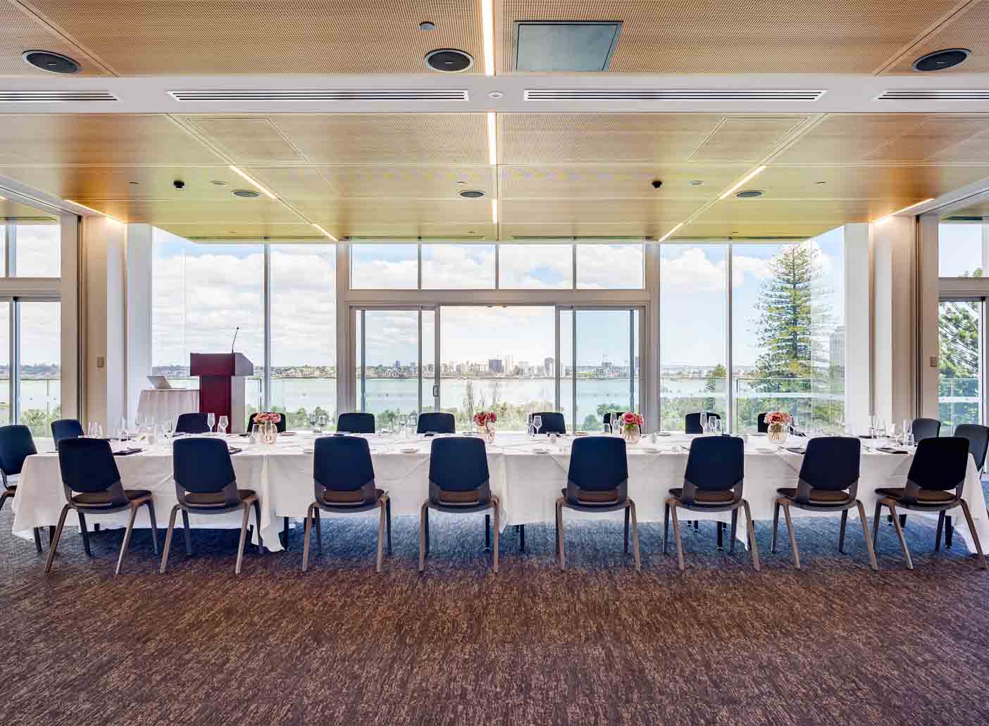 With access to a private balcony and breathtaking views of the Swan River, Government House Gardens, and St. Georges Terrace, this area is ideal for a private lunch or dinner.