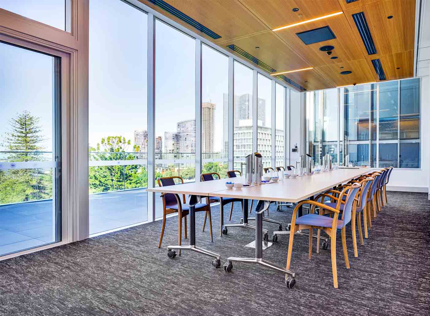 Each boardroom-style room can hold twenty people, but for cocktail gatherings, the entire floor may be opened out to accommodate eighty people. The two boardrooms have built-in video conferencing features at your disposal.