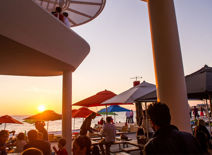 What was the historic Fishermen's Co-op building has had a do-over, now containing a 300-seater diner and bar. As Australia's first licenced beach, at Bathers Beach House one can relax on the beach underneath an umbrella, drink in hand, and watch an iconic Western Australian sun set.