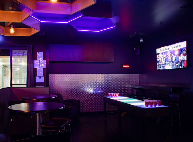 Tucked away in a hidden alleyway in the heart of Northbridge, you're invited to unleash your competitive side with our two exciting beer pong tables. Challenge your friends or make new ones over a friendly game, under the vibrant ambiance of this neon-lit venue, where the lights set the mood for an unforgettable night.