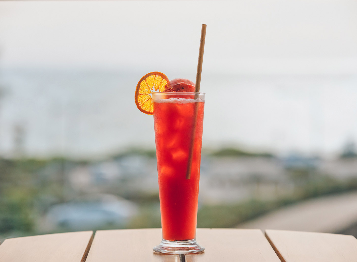 Order from the bar or scan the QR codes to order while you look out over the ocean through the giant plant wall.