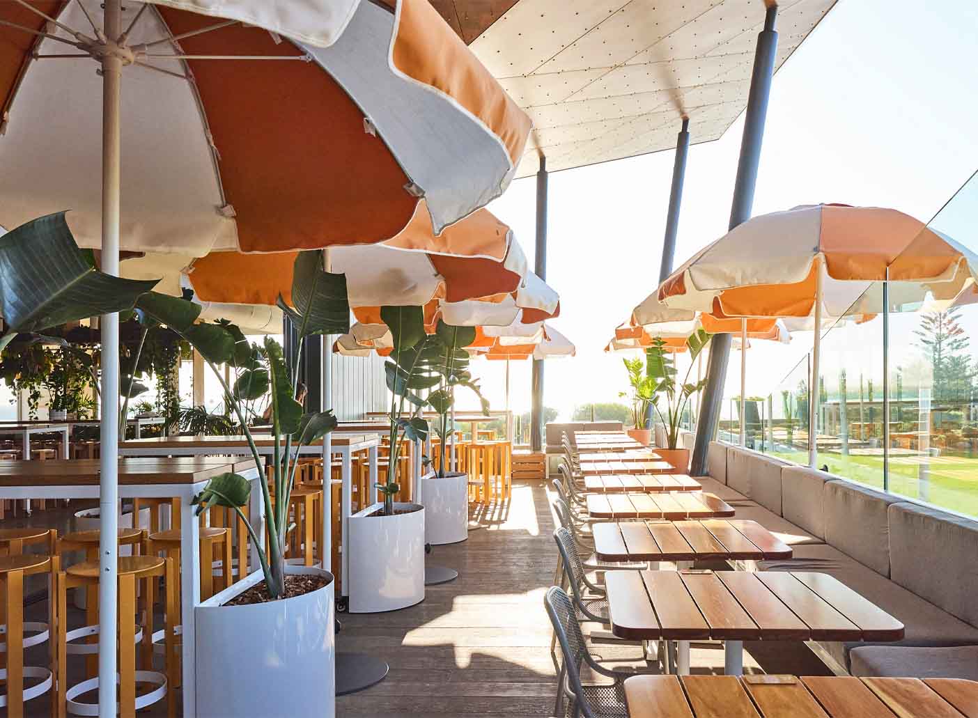 Perch yourself up under The bEach House's custom umbrellas, order from the bar or QRs and relax to the sound of the waves crashing below.