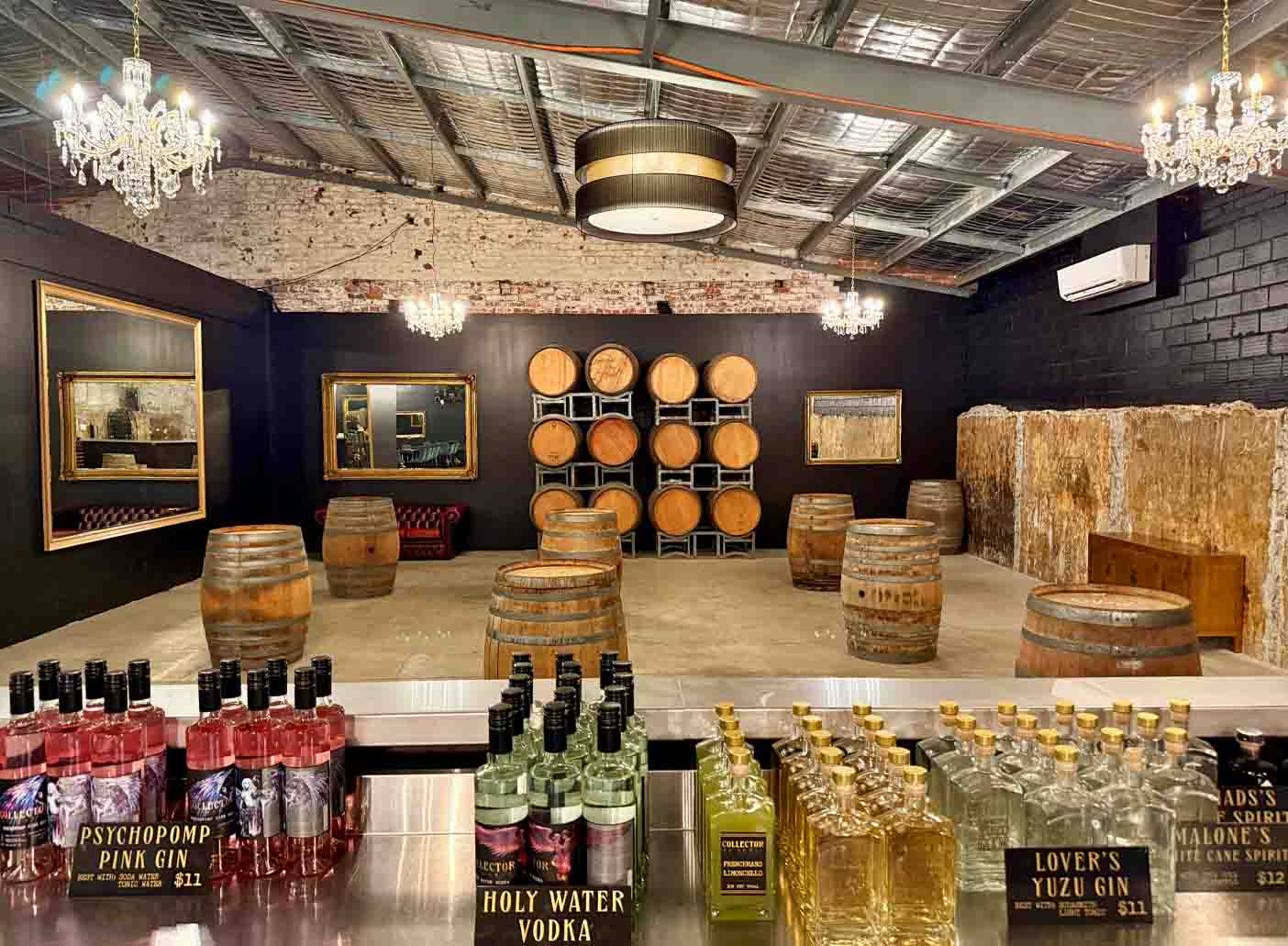 Only selling what they produce, they offer tasting paddles for beer, ready brews, cocktails and growlers to take away their products. Try before you buy with a tasting paddle, or take home your own bottle of their wine, or spirits; Holy Water Vodka, Gin Reaper Dry Gin or Psychopomp Pink Gin.