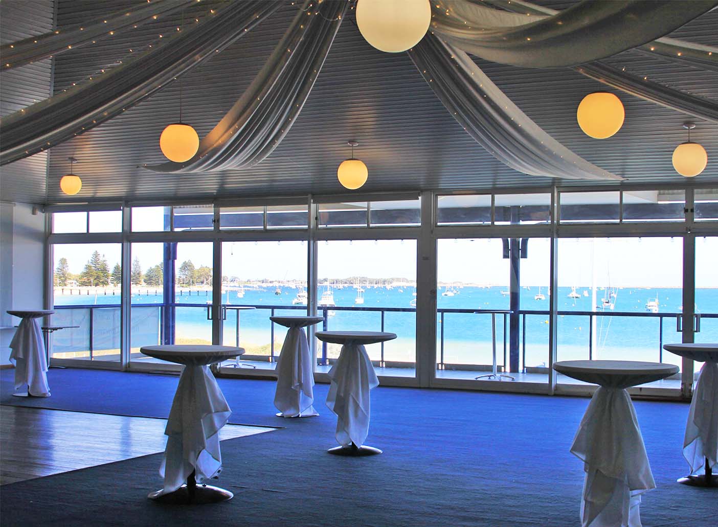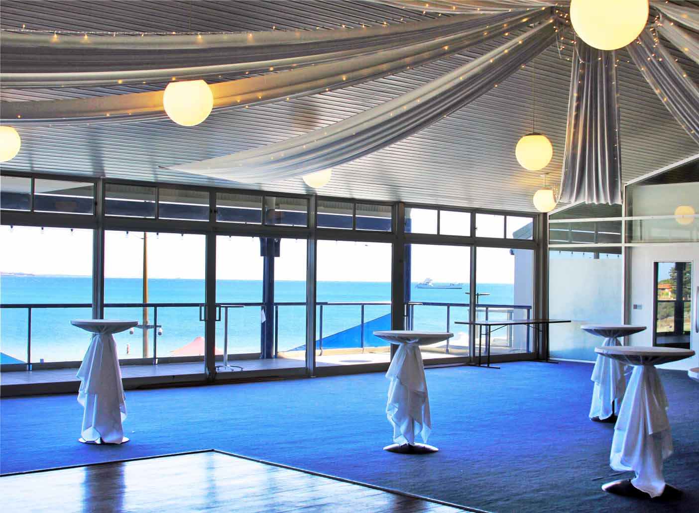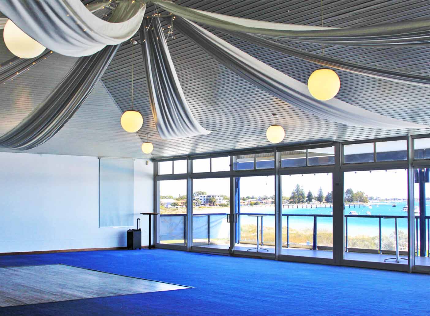 After a gorgeous and unique space? The Burgee Room is the space for you. Decked out with a dance floor, bar, draped ceiling, and a balcony boasting 180-degree views over the Cockburn Sound, there’s no better location.
