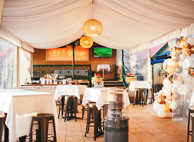 With views from the upper level of The Left Bank overlooking the Beer Garden and the beautiful Swan River, this area is perfect for any summer party.