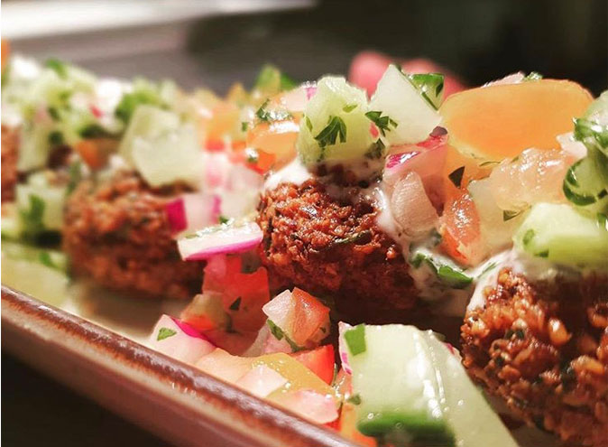 Kunéfé Prego’s house speciality-layered shredded filo & haloumi cheese, spiced sugar syrup, roasted pistachio.