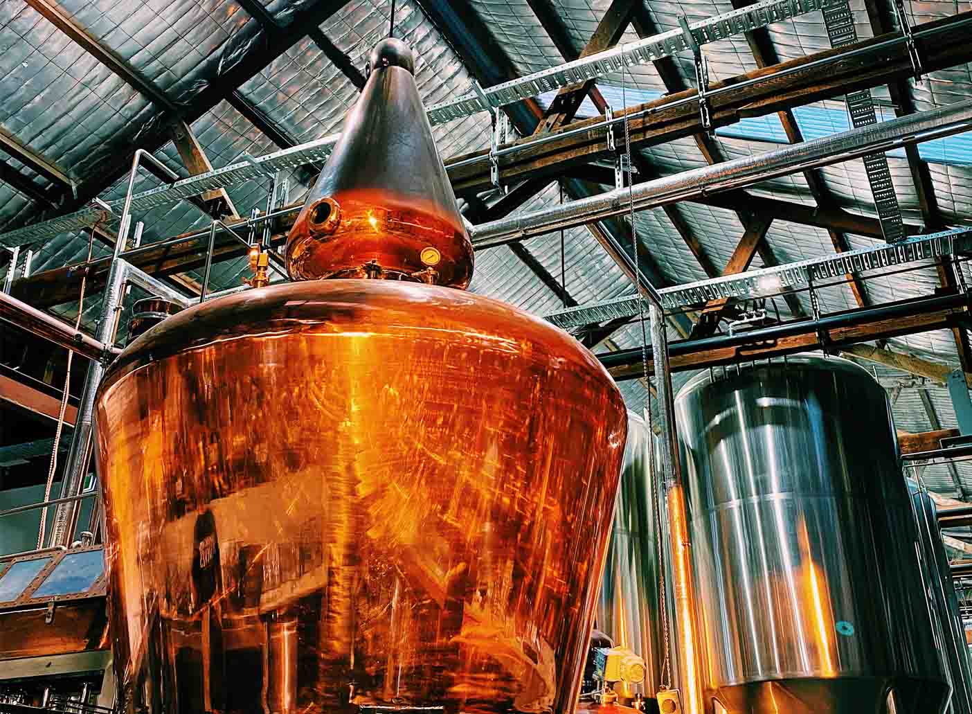 The menu invites friends to gather and share delicious dishes, sample our latest hand-crafted beverages and become immersed in an environment of copper pot stills, brewery tanks, and distilling barrels.