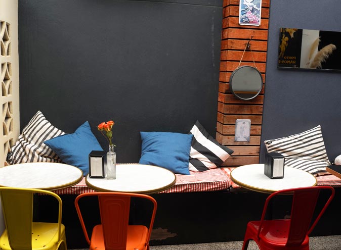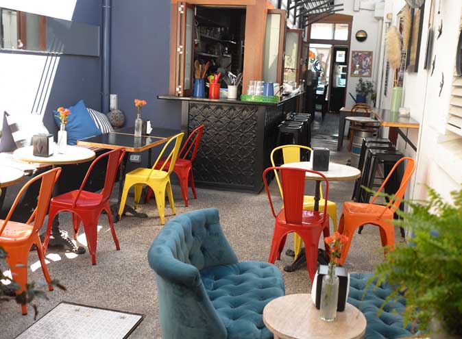 The Courtyard is a colourful & intimate setting with a retractable awning to allow the sunshine in and to keep the rain out. There is cosy banquette seating and furniture that can easily be moved around or moved out to suit the style of your event.