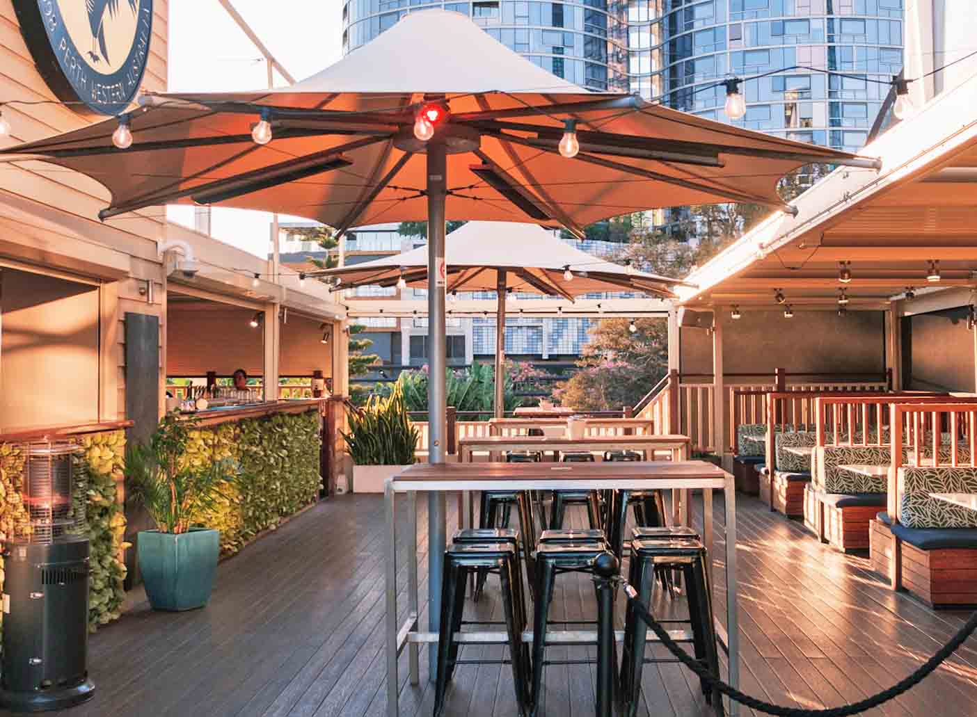 The Garden bar offers the best views in the venue of the Bell Tower and the Ritz Towers as well as catching the sunset over Kings Park. To the other side, beautiful views of the Swan River.