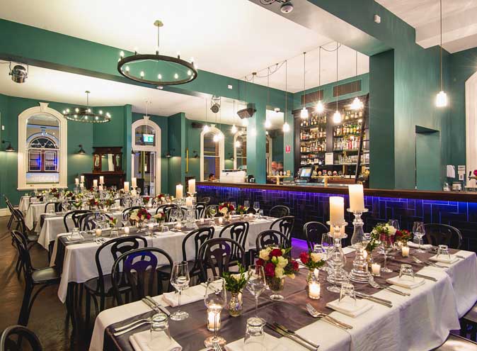 On the first floor of The National Hotel you will find a cosy restaurant with a classic interior, dominant with calm and warm colours. The first-floor restaurant has original fireplaces, vintage crystal decanter lights, jarrah floors, exposed brick walls, huge French-windows, high ceilings and Federation-style architecture, with a magnificent 50 metre veranda running along two sides of the room giving spectacular views.