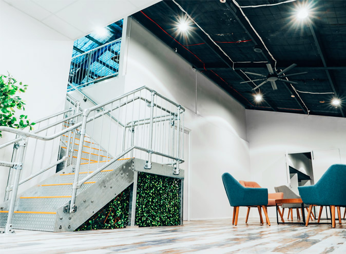 The beating heart of 3Danks, The Gantry is a striking 260 sqm performance and production space with soaring 12m ceilings and premium technical specs.