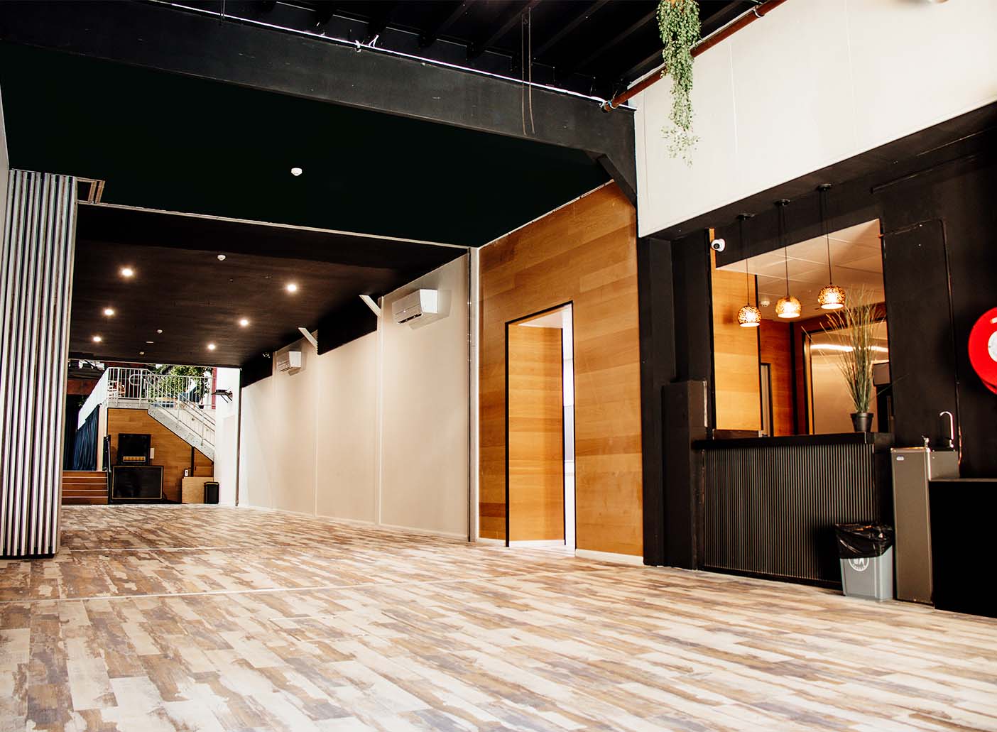 The Walton Room is a 102sqm space designed for flexibility and flow within a clean, modern setting. It can function as a private breakout area or open-plan foyer, extending up to 30 metres when connected to adjacent rooms—ideal for arrivals, cocktail pre-functions, or gallery-style transitions to The Gantry. Tri-fold doors open to a wide 3.2m x 2.7m entrance, allowing easy access for guests and large deliveries. Named after ballet educator Marie Walton-Mahon OAM, the space honors its creative roots while offering practical versatility for today’s events.