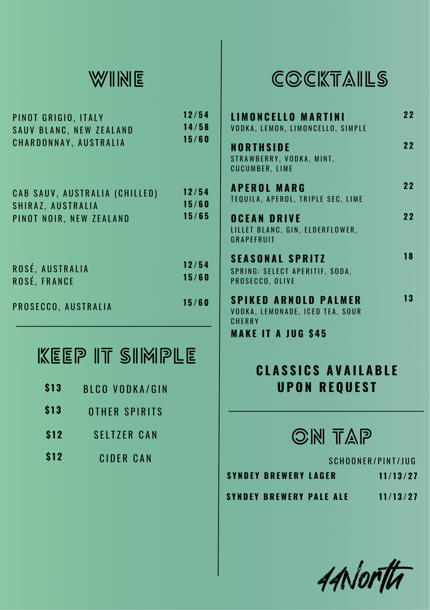 Whether you’re here for after-work drinks, a casual night out, or just catching up with friends, you’ll find a welcoming space, friendly faces, and a menu full of great cocktails, local beers, and wine.