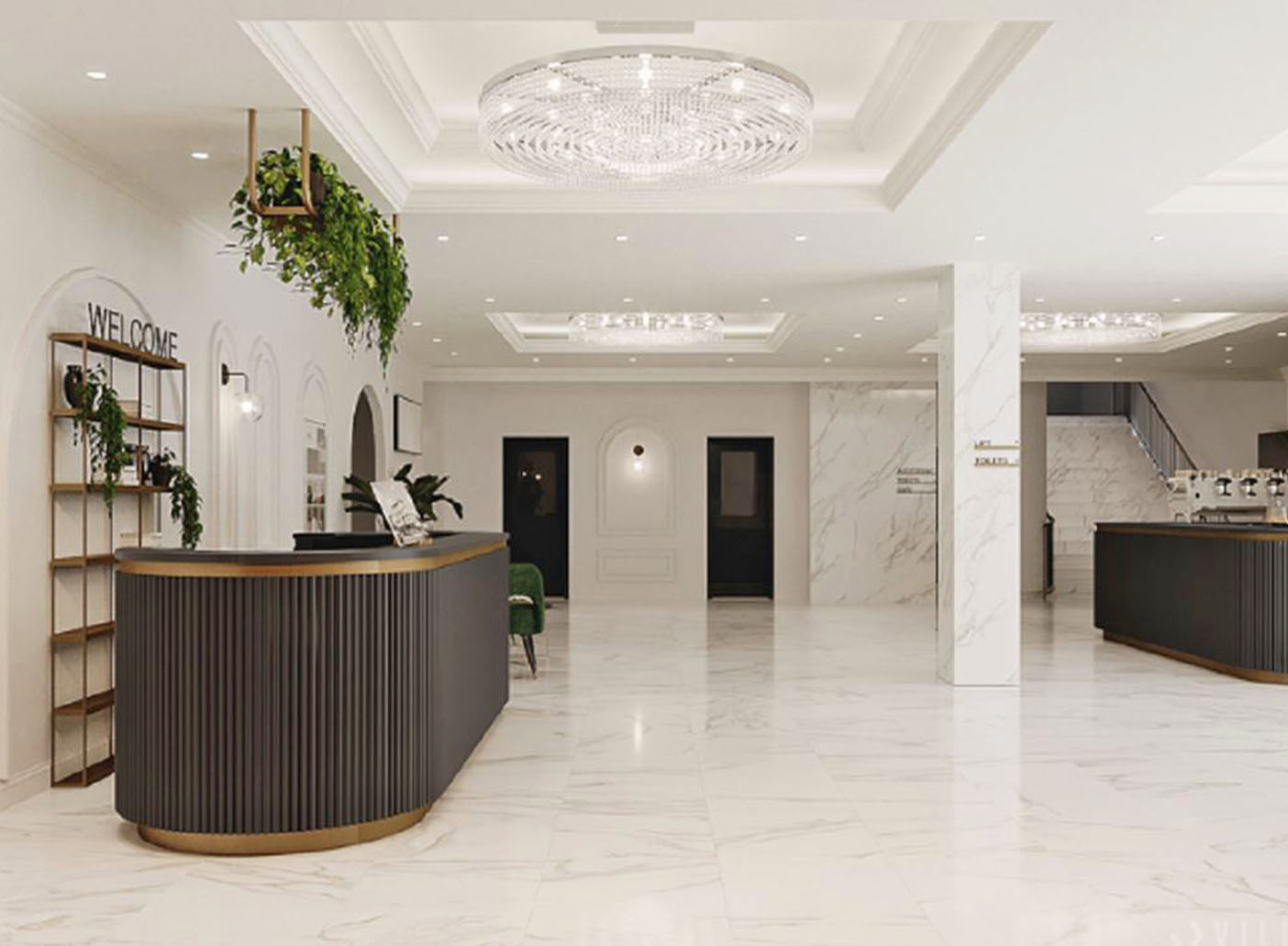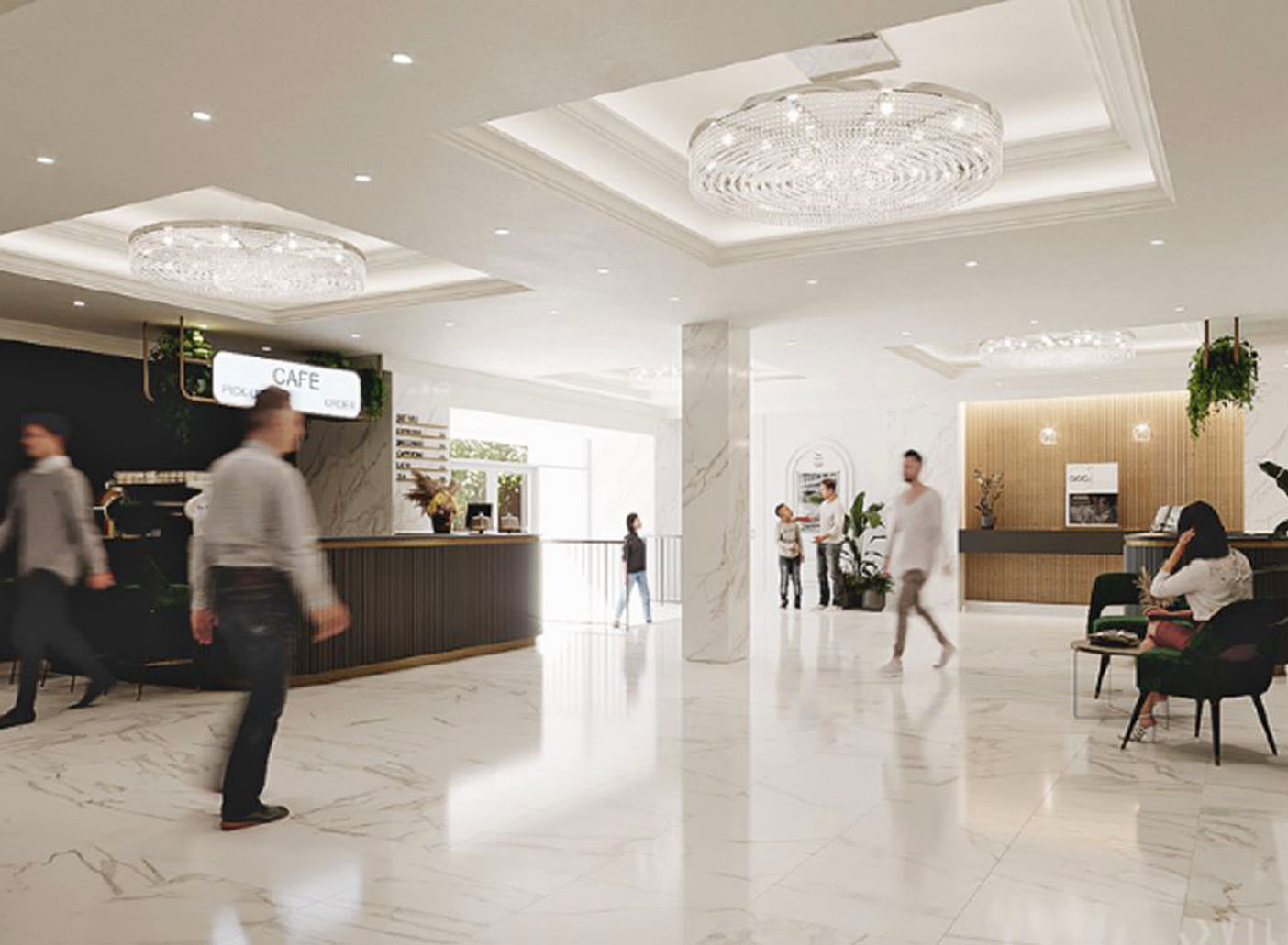 As soon as guests arrive, they're greeted by a welcoming grand entrance, with polished white marble floors, a chic welcome desk and a fully serviced cafe, creating an exceptional experience.