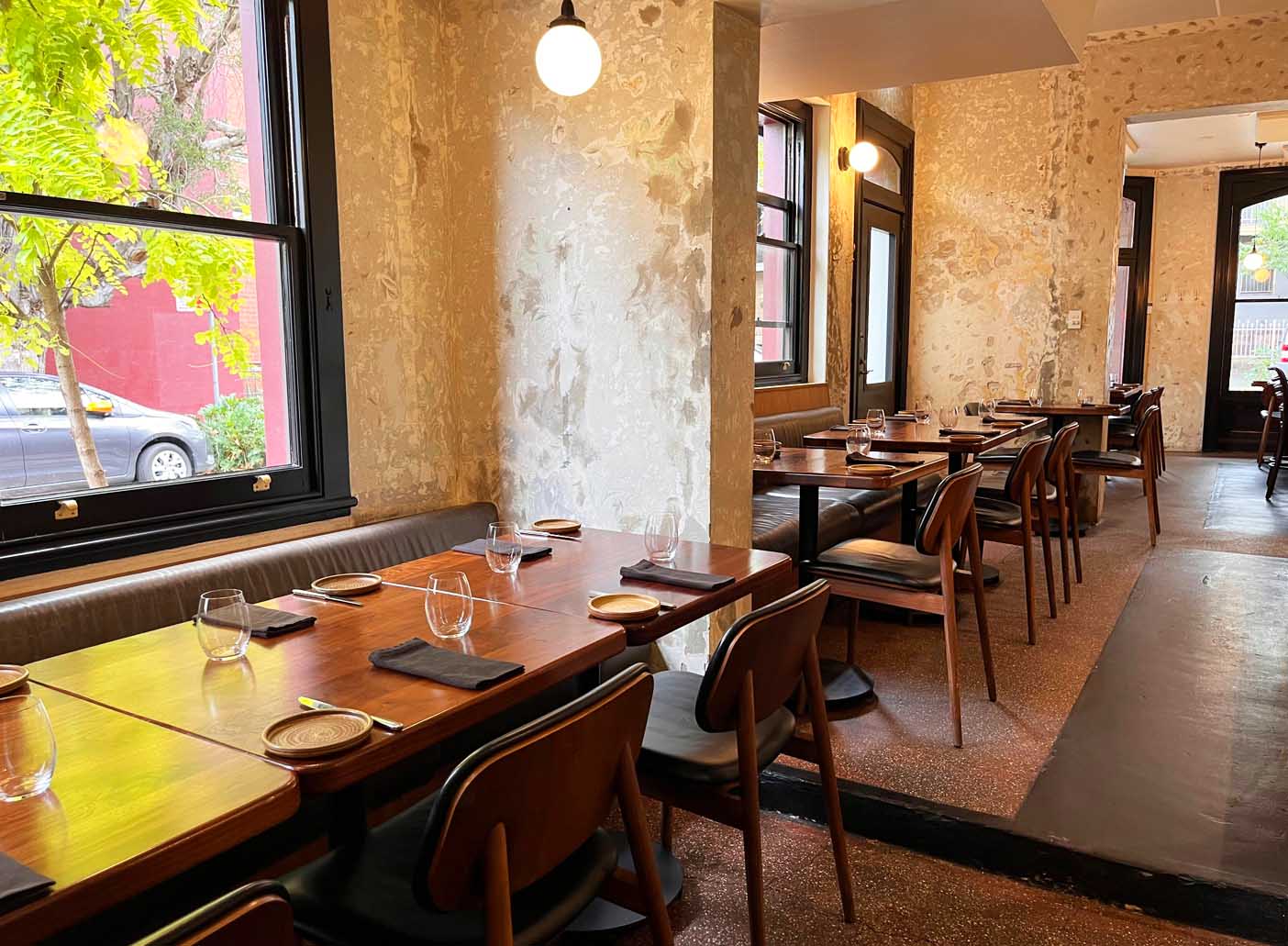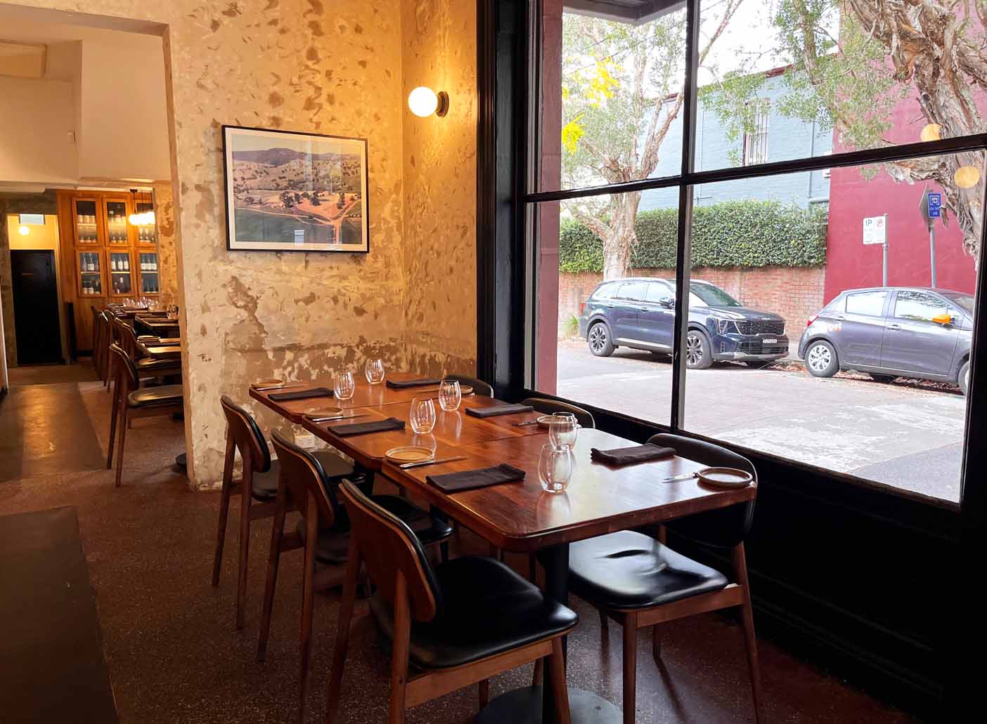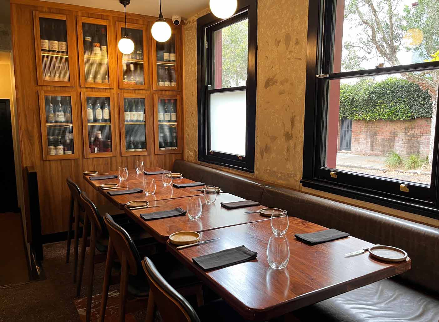 Framed by grand arch windows and overlooking the vibrant Bourke Street, the front room offers an elegant setting for groups seeking a more private yet atmospheric dining experience.