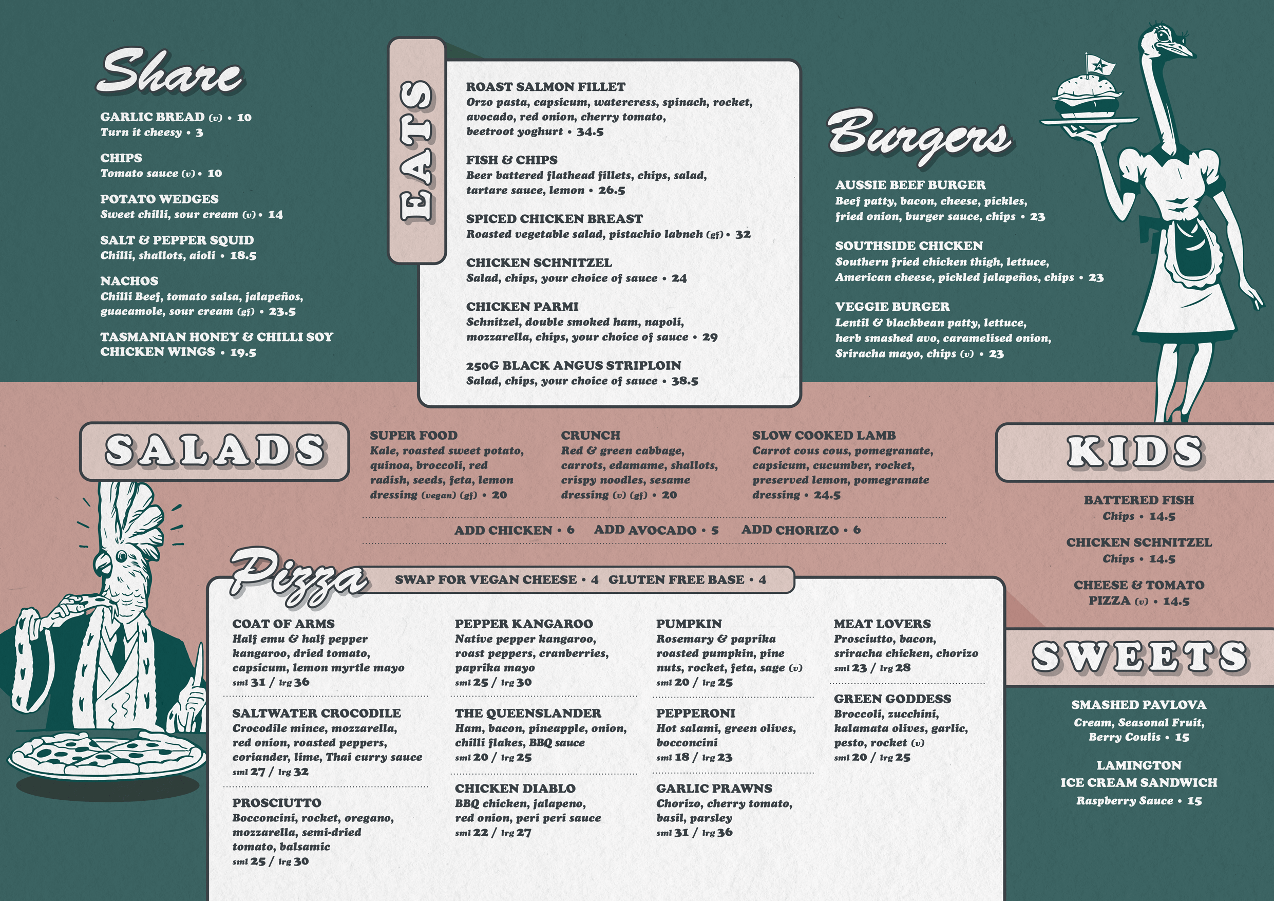 Known for their pizzas and classic pub offerings, there’s something for everyone on the menu. Popular amongst tourists and locals alike, the Coat of Arms pizza is topped with emu and kangaroo. Not feeling as adventurous? Give the Chicken Schnitzel or beer-battered Fish & Chips a try. They even have a metre pizza option; perfect for those larger group bookings.