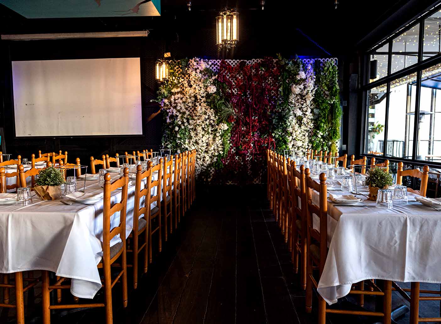 The versatile function spaces cater to both intimate gatherings and large celebrations, with indoor and outdoor seating, customisable packages, and a vibrant atmosphere day or night.