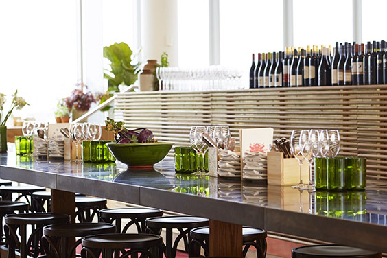Overlooking Sydney Harbour and Woolloomooloo, magnificent views grace a contemporary dining room as well as a casual bar with large communal table and semi-private dining enclave.
