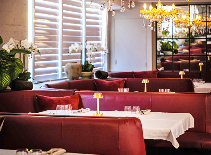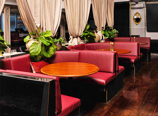 Their main dining area provides white marble table top, red leather booths which can be closed to make the venue intimate and private.