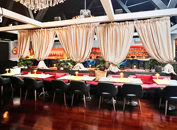 With high ceilings and chandeliers, curtains that drape down around large red booths, this lux and vibrant space offers mexican cuisine and the perfect backdrop for any event.