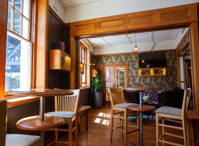 This large, L-shaped function room is decorated with Harbour Bridge memorabilia and history. With a private bar and two serving points, one long table with high stools and comfortable sofa seating, this room can suit all your function needs.
