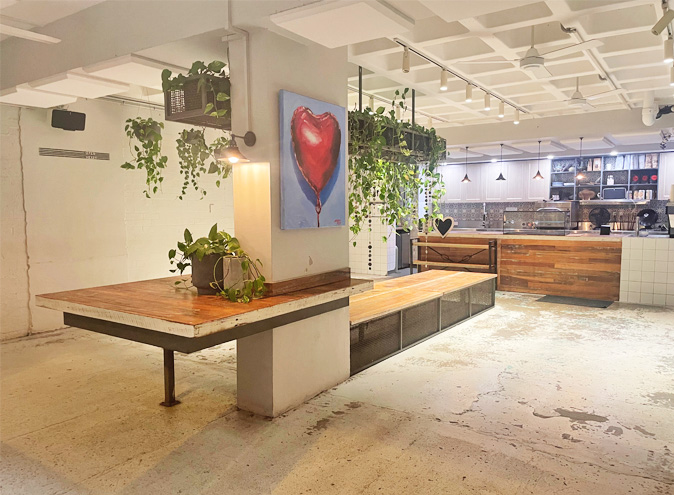 The ground floor dining area of Heart Café provides you with the ideal blank slate to create the ultimate entertainment event. Its industrial-chic finishes will complement any event, from a casual party to more formal occasions. Bright, airy, and open-concept describe the area to a T. Filled with sunlight and catching sea breeze from the enormous folding windows, you can enjoy the bounty and the beauty of Bondi. Events at Café Heart support programs that The Wayside Chapel deliver that help change lives every day. Now that’s a celebration with a big Heart!