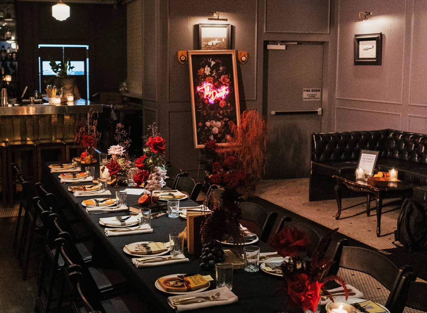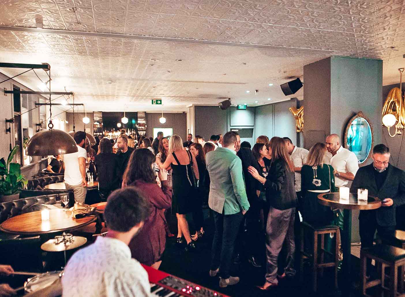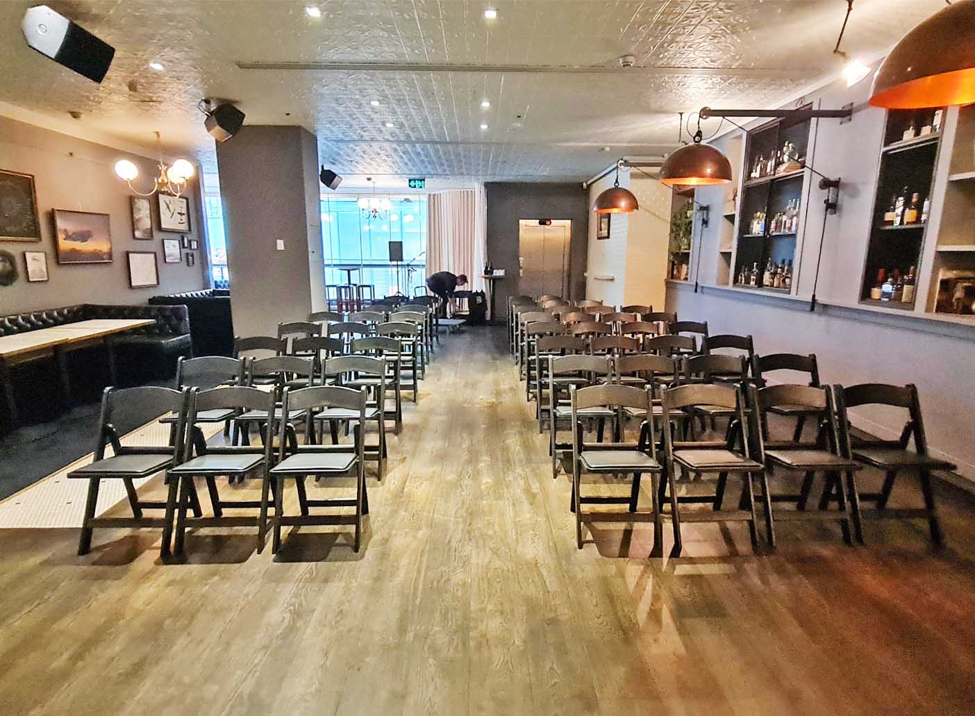 In cocktail configuration, the space includes full bar service, with a mix of high tables & booth seating. Suitbale for up to 175pax.