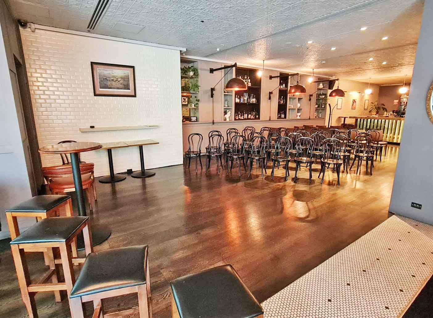 In seated banquet configuration, the space includes full bar service and table service during seated banquets. Suitable for up to over 60pax depending on configuration and entertainment, etc.