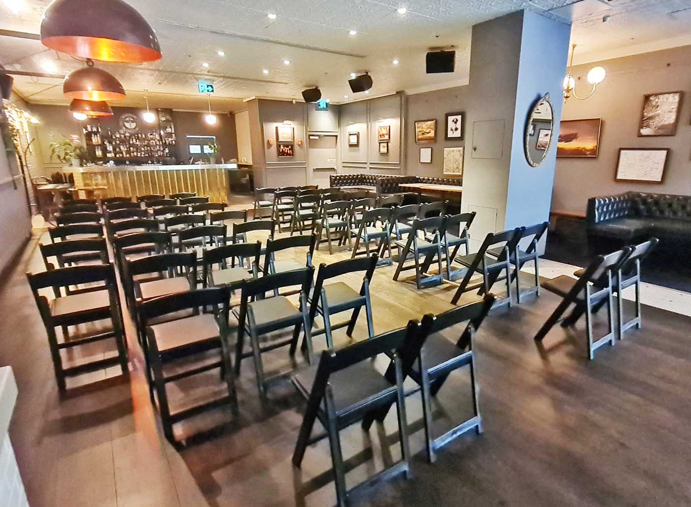 As a private space, ideal for formalities and entertainment, take advantage of a TV screen/projector, wireless microphone, in-house audio or DJs/bands/etc. including use of a sound system and curated playlists.