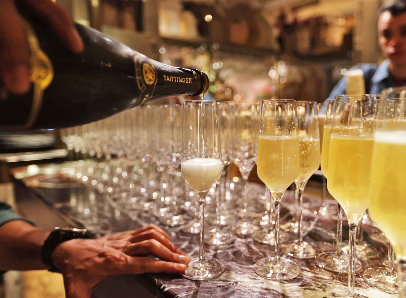 The imposing 14 metre semi-oval green marble bar takes centre stage while dark timber, brass detailing, antique mirrors, rich emerald velvet curved banquettes and a glass ceiling are additional noticeable elements of this sumptuous space.