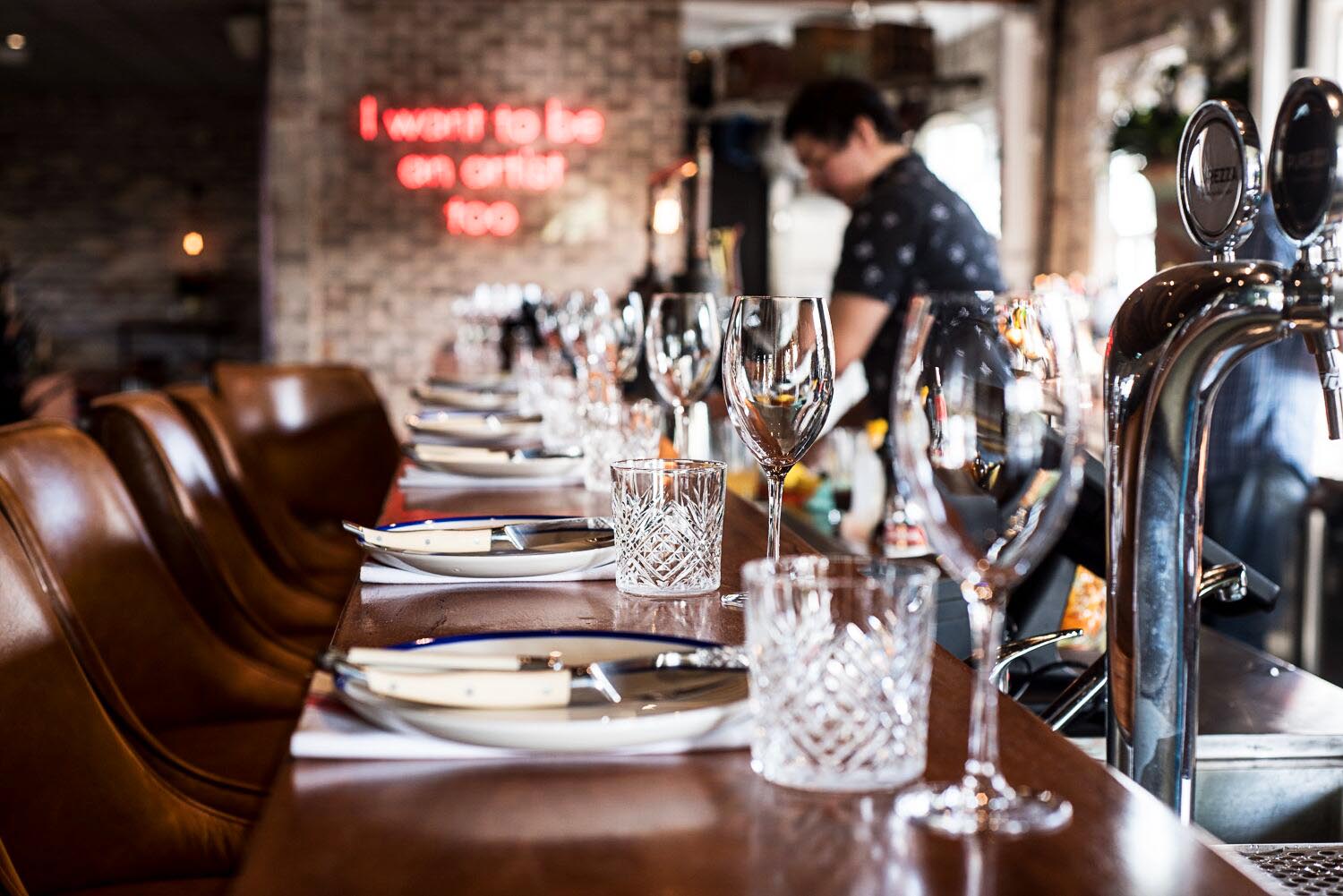 Located on the ground floor, the Vineyard opens to the street with classic bi-fold windows. Rustic brickwork, warm lighting with Art from 'Jover' creates an intimate space featuring a 6 meter long chesterfield. The Vineyard offers 32 seats and can host functions of up to 45 people cocktail style.
