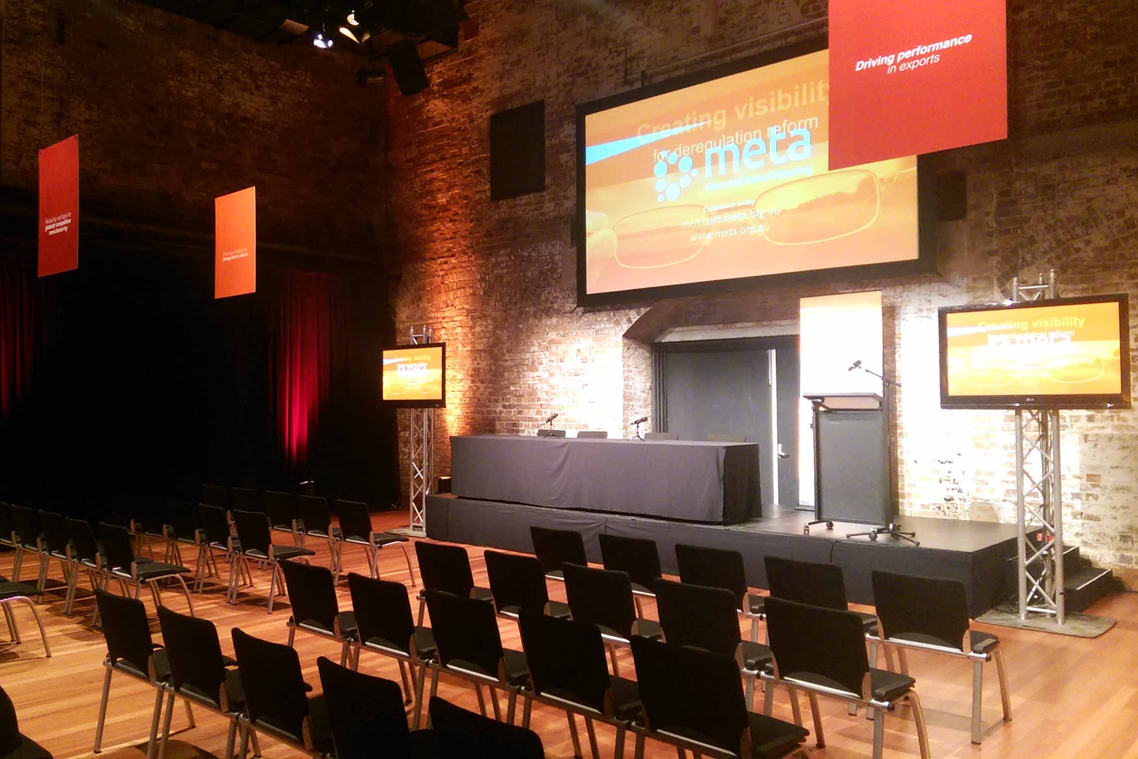 Richard Wherrett Studio features the grandeur of yesteryear with high ceilings, historic and rustic brickwork, iron bark beams and the remnants of the original industrial equipment. It is perfect for small exhibitions, corporate presentations, meetings, workshops and rehearsals.