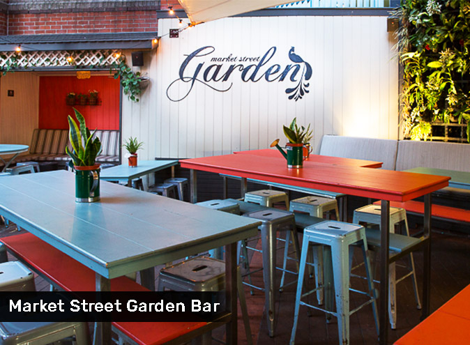 This light-filled Market St Bar & Garden offers casual reservations or can be hired exclusively for 250+ events.