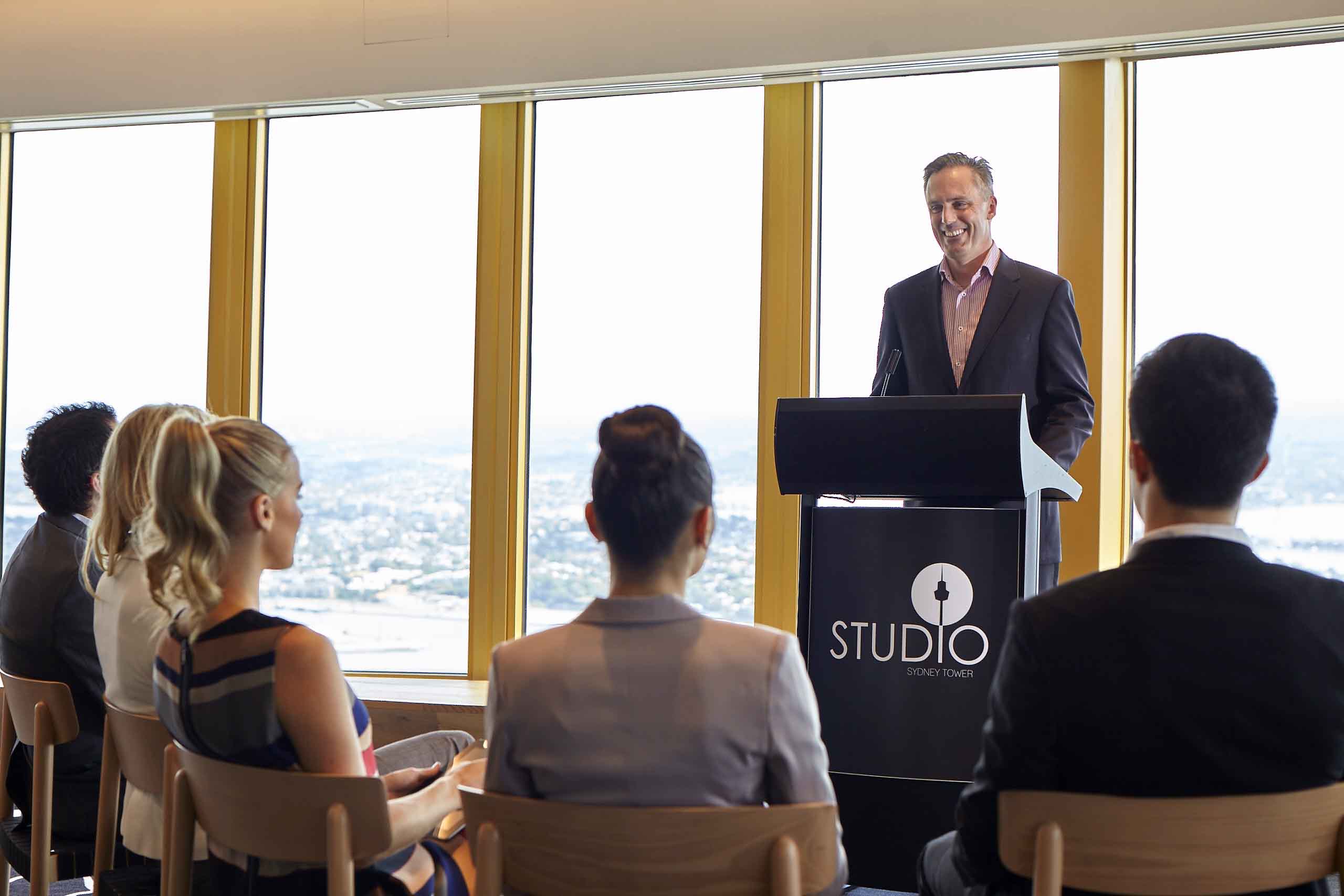 Available for breakfast meetings through to evening celebrations, treat your delegates to an unforgettable experience at STUDIO, Sydney Tower. STUDIO offers a bar and cocktail space using Sydney as the backdrop, allowing you to hold team building, think tanks, masterclasses, wine appreciation, private dining, brand launches, cocktail and dinner events.