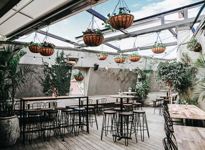 The luscious open-air rooftop garden, situated on the top floor is the crown jewel of the Taphouse, featuring its own bar. The newest and most popular space boasts a unique outdoor experience. Elm Rooftop sits above The Taphouse and features its own bar, retractable awning & festoon lighting creating a lush intimate alfresco escape.