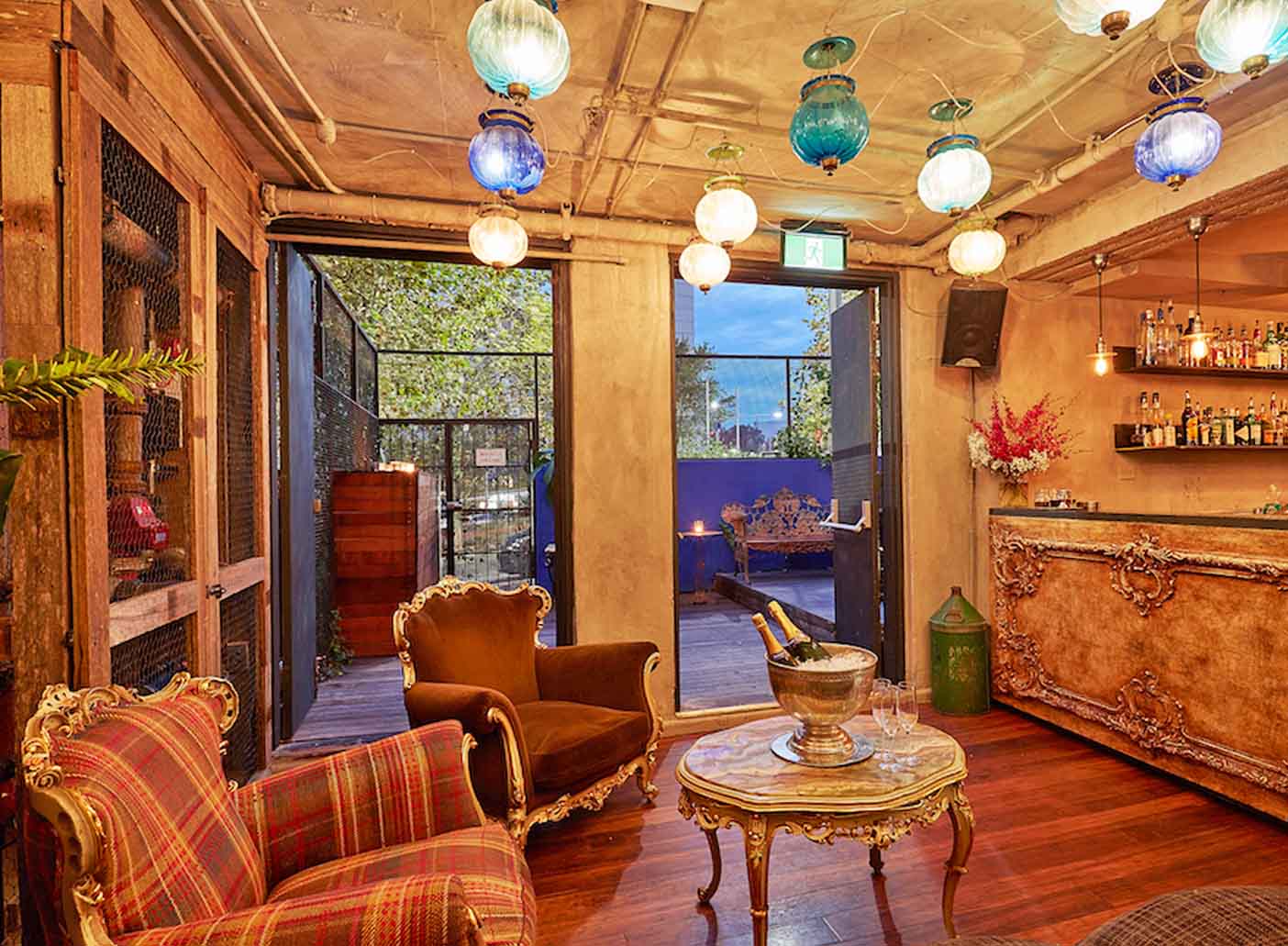 Gold bar is a beautiful sunken lounge area with is own private bar area and eclectic one of a kind furniture.