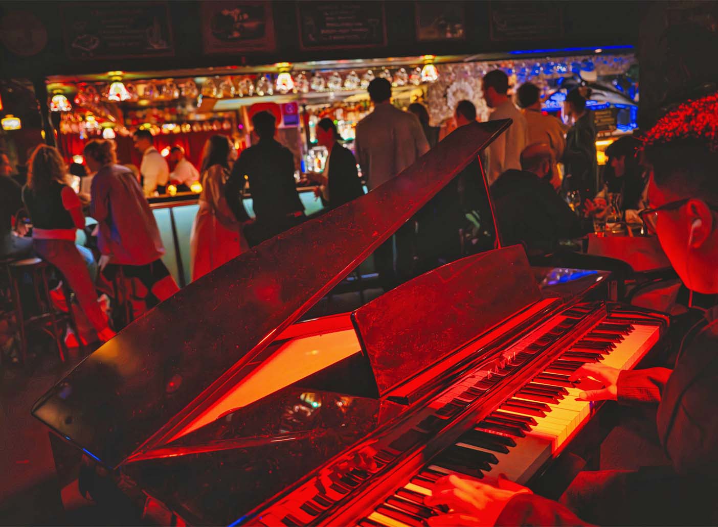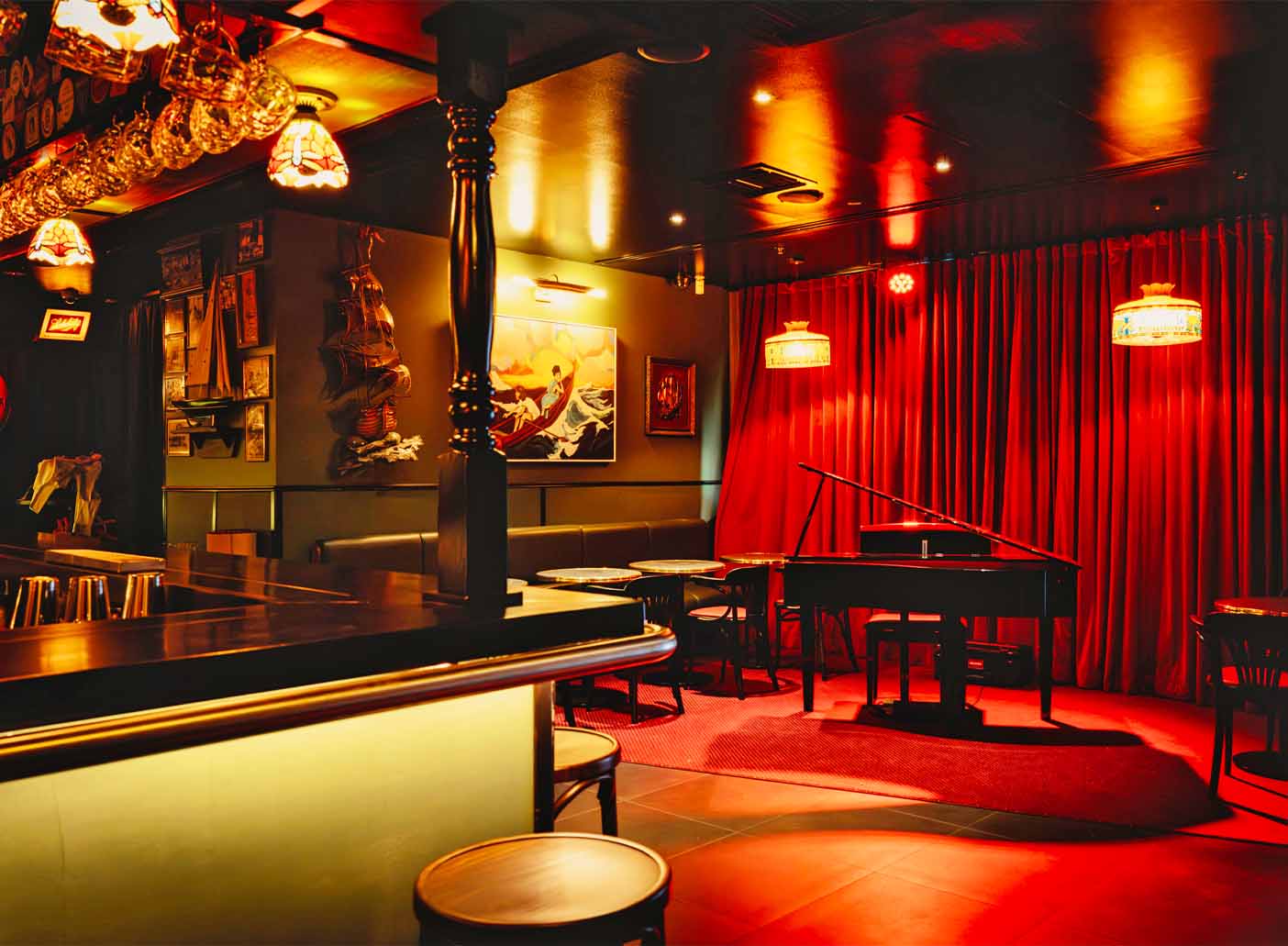 Set inside a glamorous saloon-style bar complete with live piano music, luxurious mood lighting and deep red curtains, your next event is guaranteed to bring the wow factor in this cozy hideaway.