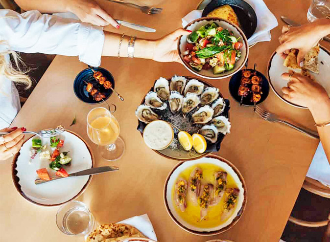 Harnessing light blue hues, custom-made ceramic light fixtures and rattan chairs to set the scene, Topikós is a beautiful setting for your next function.